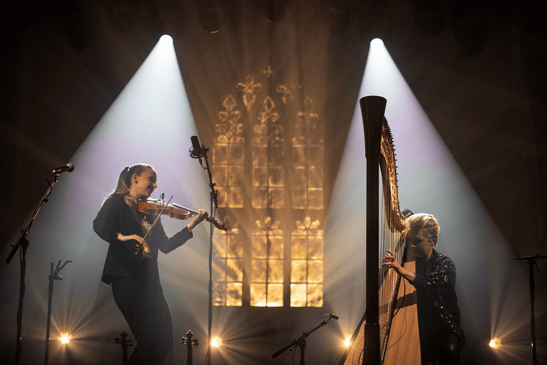Desde lados opuestos del mar de Irlanda, la violinista Ní Bhriain (Dublín) y la arpista Finch (Gales) se unen en una colaboración que cruza fronteras musicales. Ní Bhriain combina su formación clásica internacional con una profunda raíz en la tradición irlandesa. Finch, reconocida por su carrera clásica y sus proyectos innovadores, ha explorado nuevas sonoridades a través de colaboraciones internacionales.