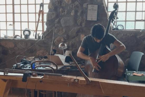“He currently works with sound experimentation by building or modifying instruments, such as a saxophone with a pedal that activates a flap to produce effects.”