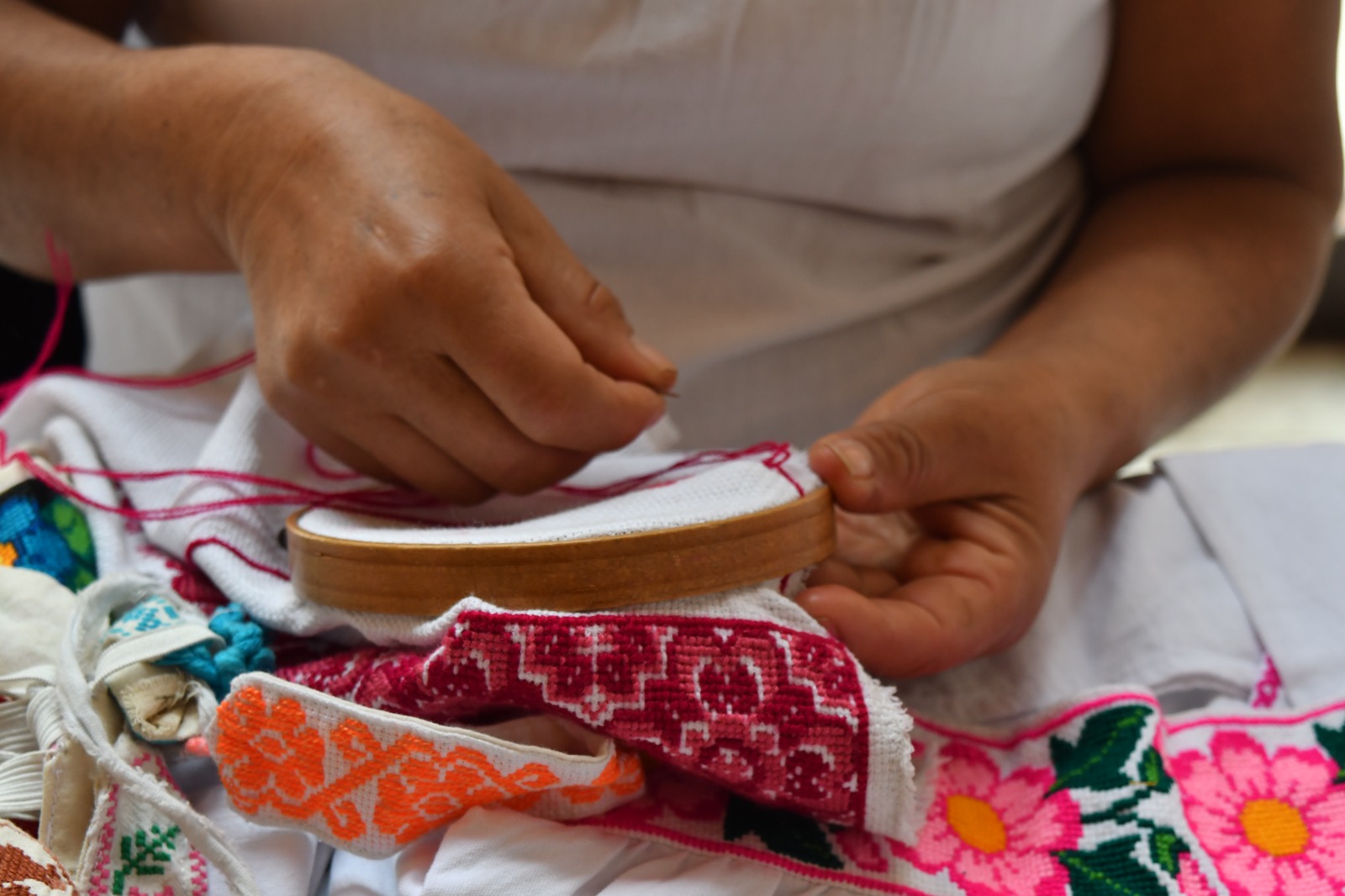 Los textiles son sistemas de comunicación visual que condensan la historia y cosmovisión de los pueblos. En Veracruz, con siete regiones culturales, confluyen técnicas, tradiciones y saberes mesoamericanos con profundo simbolismo. La Huasteca y Totonaca producen prendas de algodón bordadas a mano en punto de cruz; en el Centro, la Sierra de Zongolica elabora textiles de lana criolla hilada y teñida con tintes naturales; en las Altas Montañas, la Sierra de Chiconquiaco mantiene fajas y gabanes de lana; y en el sur, Sotavento, Los Tuxtlas y la región Olmeca destacan por tejidos de horquilla, crochet, rejillados, chales y fajas en telar de cintura.