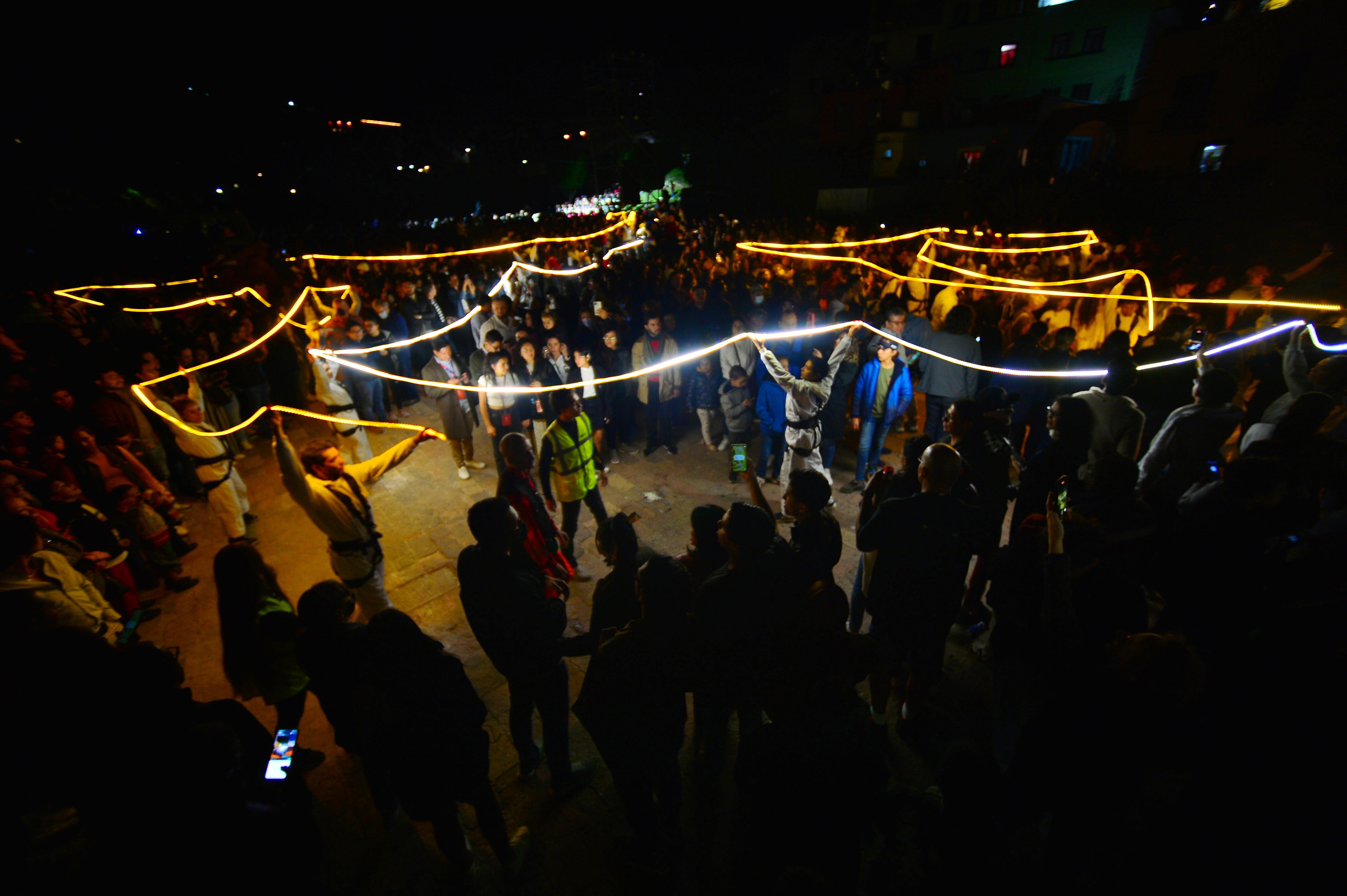 Guanajuato, México. 15 de octubre de 2022. La Fura dels Baus convirtió la noche de ayer a Los Pastitos en una escenografía que sintetizó la historia de Guanajuato, sus leyendas y símbolos, entre los que destaca el Festival Internacional Cervantino.