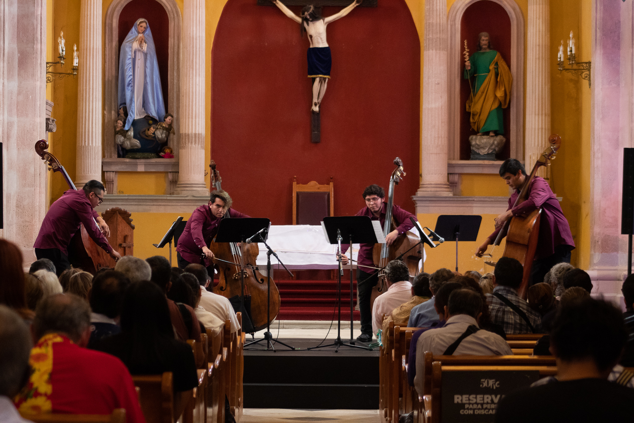 Además, el grupo Mushamukas, Ensamble de Contrabajos tuvo su presentación la tarde de este jueves 20 en el Templo del Señor Santiago Apóstol en Marfil.