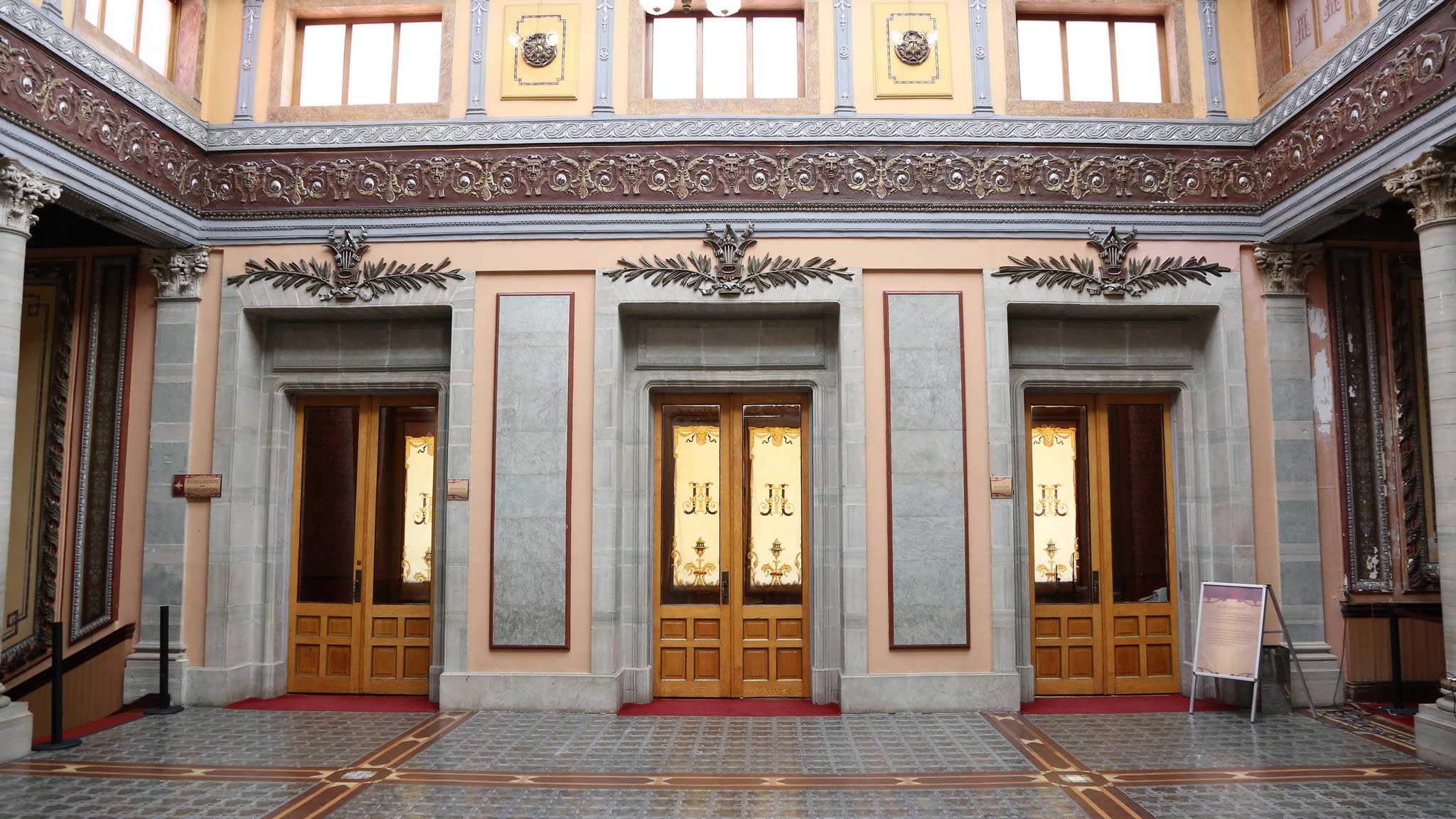 El público también podrá apreciar la intensiva restauración que se realizó en el foyer y los salones tocador y fumador en planta alta; con las que se corrigieron grietas y se recuperaron elementos ornamentales. También se recobraron los colores originales en los muros del interior y se restauró la pintura de la Santa Fe de la escalera de honor.