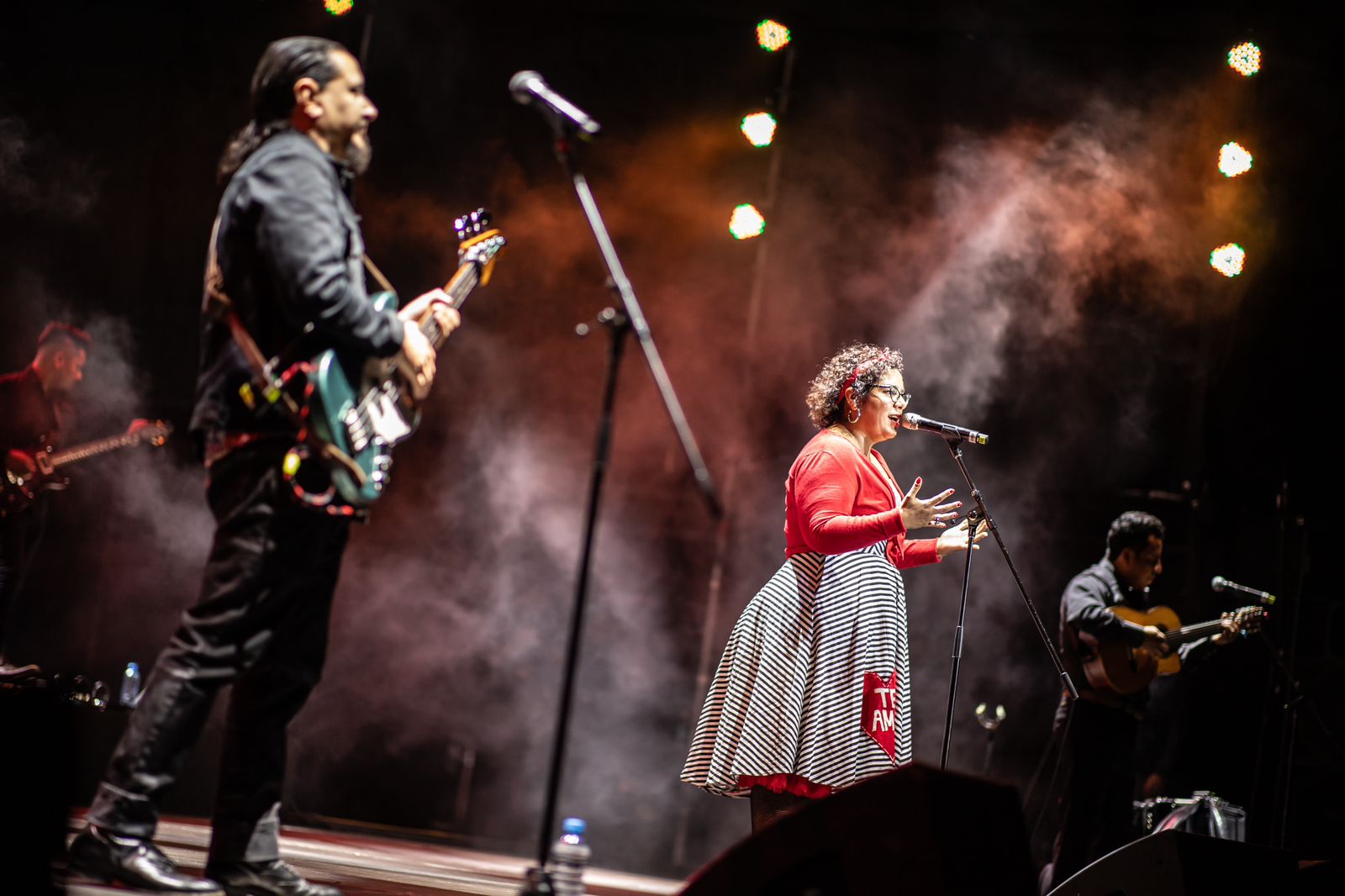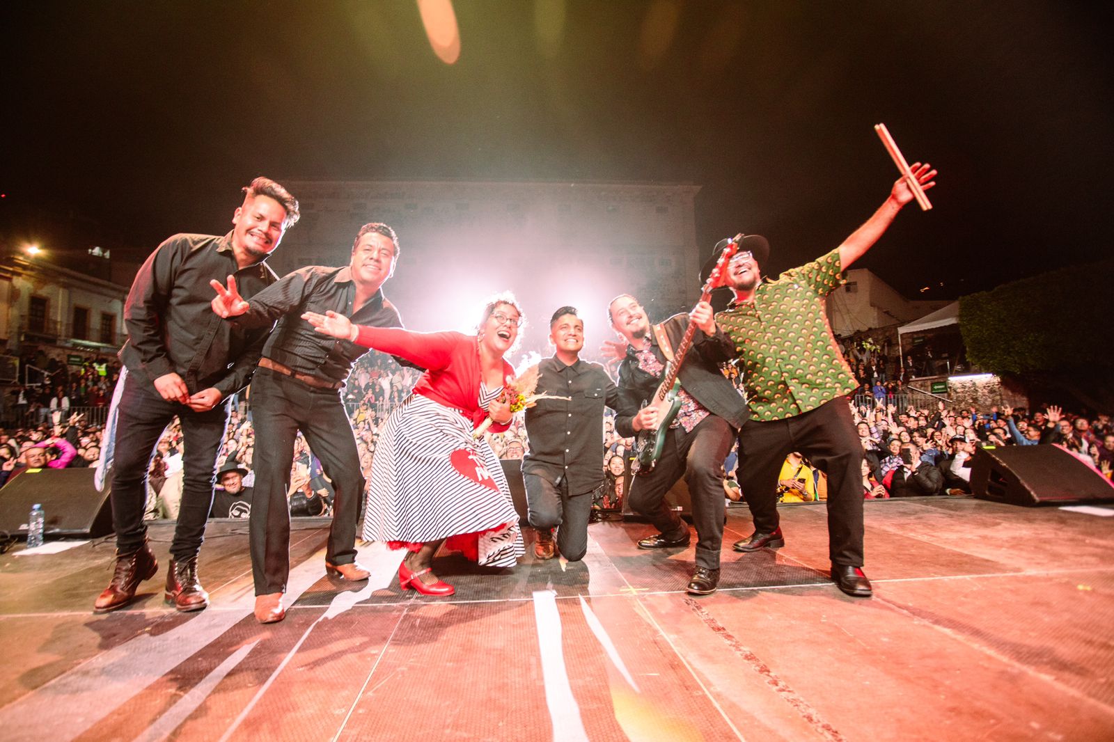La noche en la Explanada de la Alhóndiga de Granaditas se tornó cálida y abrasadora, como una reunión entre amigos que entre un trago y otro entonan a todo pulmón canciones de amor, desamor y melancolía. Esto gracias a la presencia de La Santa Cecilia, quien ofreció un concierto basado en una selección musical de su último álbum, Cuatro Copas- Bohemia en la Finca Altozano.