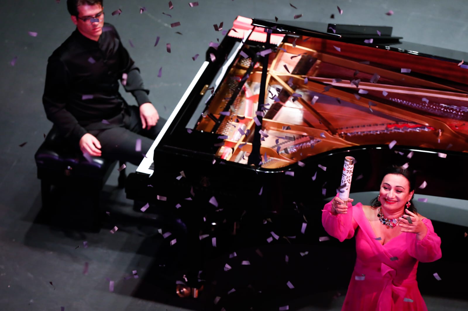 La velada musical continuó con la mezzosoprano Varduhi Khachatryan, en un concierto en el que demostró su pureza vocal y técnica impecable. El Teatro Juárez recibió por primera ocasión a la artista armenia con un programa en homenaje a la cantante griega Maria Callas, considerada históricamente como la soprano más inminente del siglo pasado.