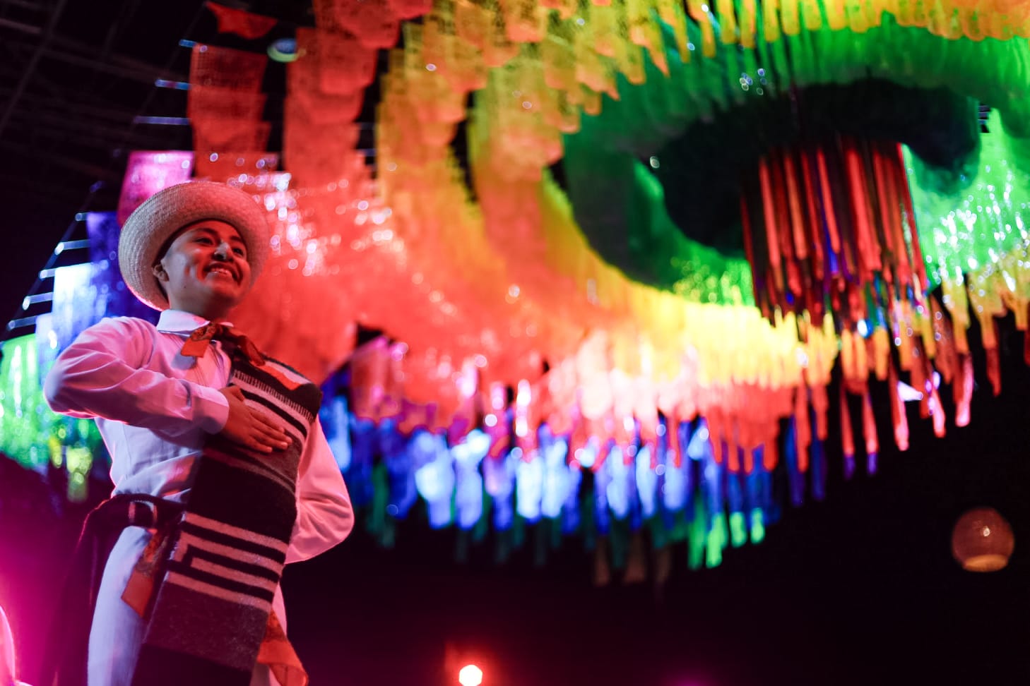 La celebración escénica a cargo de La Guelaguetza, tradición originaria de Oaxaca, permitió apreciar una muestra de la riqueza cultural que se complementó con música, danza y fiesta de sus delegaciones.
